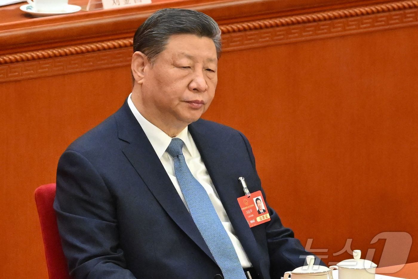 시진핑 중국 국가주석이 8일(현지시간) 베이징 인민대회당에서 열린 전국인민대표대회(전인대) 둘째 날 회의에 참석을 하고 있다. 2025.03.08 ⓒ AFP=뉴스1 ⓒ News1 우동명 기자