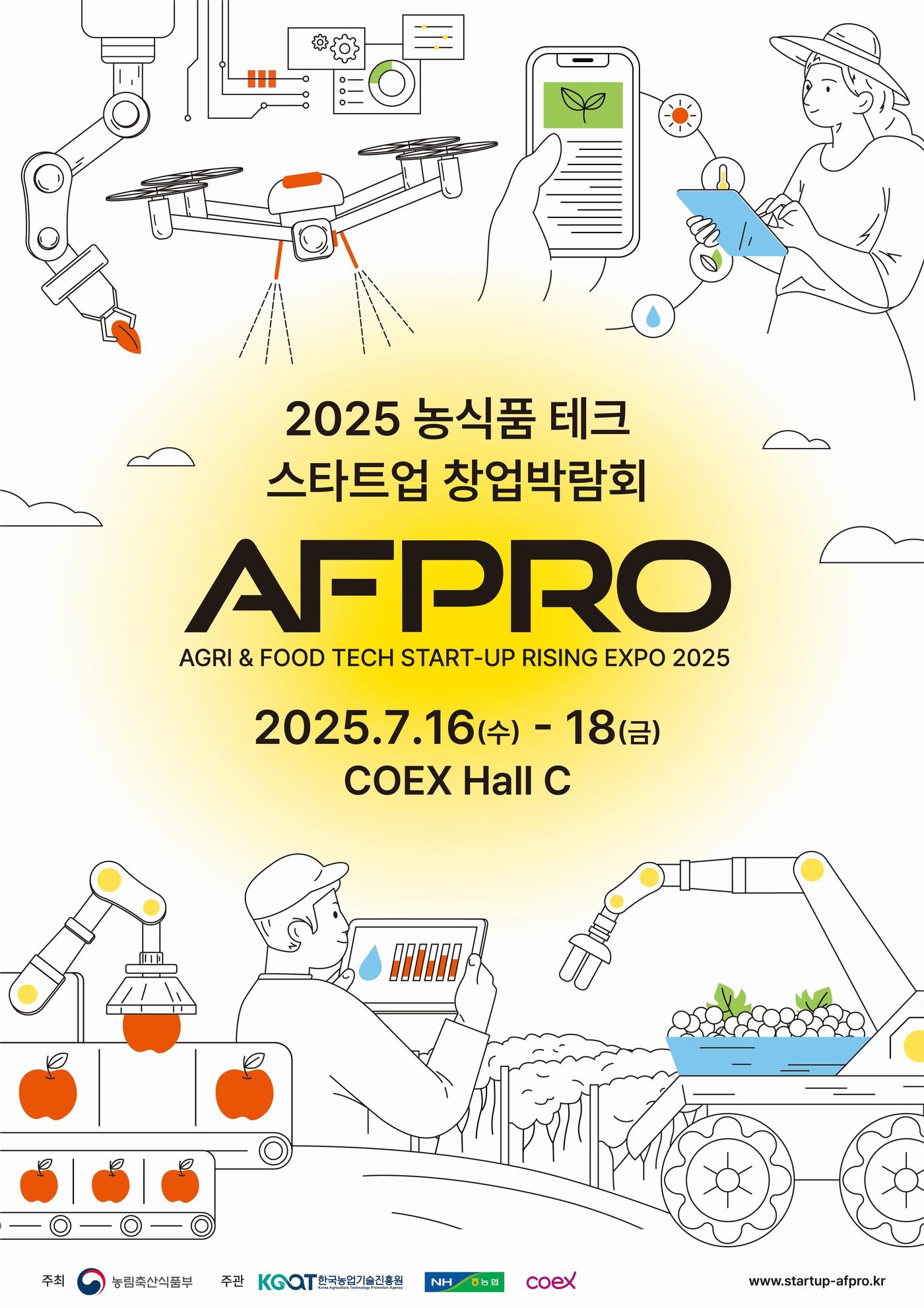 'AFPRO 2025'는 농식품 분야 유망 창업기업이 기술기반 제품과 서비스를 선보이고, 투자자·유통사·바이어 등과의 협업기회를 모색하는 농식품 분야 유일의 B2B 중심 창업박람회로, 올해가 3회째다.