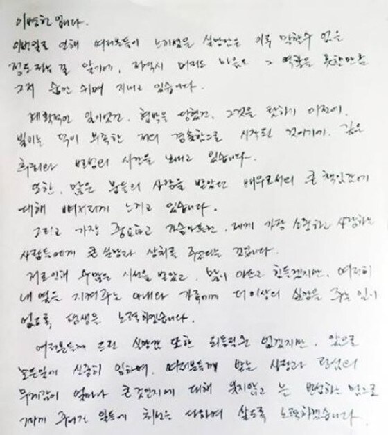 끝으로 이병헌은 아내인 배우 이민정을 언급하며 “여전히 내 옆을 지켜주는 아내와 가족들에게 더 이상의 실망을 주는 일이 없도록 평생을 노력하겠습니다. 늘 반성하는 마음으로 제게 주어진 일들에 최선을 다하며 살도록 노력하겠습니다”며 자필 사과문을 끝마쳤다.