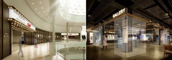 CGV천안펜타포트의 로비 입구(좌)와 로비 내 CGV 갤러리 섹션(우) CJ CGV 제공 © News1