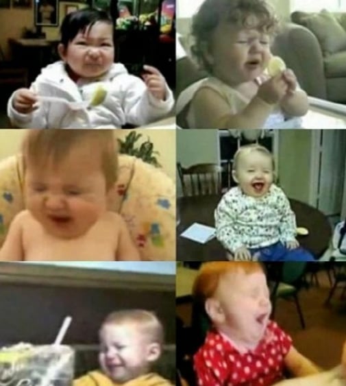 레몬 먹는 아기들의 귀여운 표정이 화제다.