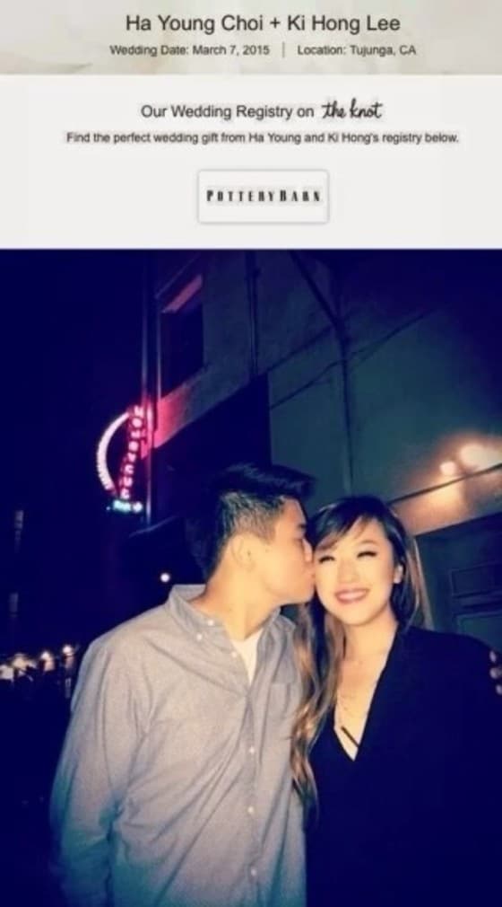 2일 각종 온라인 커뮤니티에는 '이기홍 청첩장'이라는 제목의 사진이 올라왔다. 해당 사진에는 이기홍과 그의 여자친구 최하영 씨가 7일 미국 로스앤젤레스 터헝가에서 결혼식을 올린다는 내용이 담겼다.