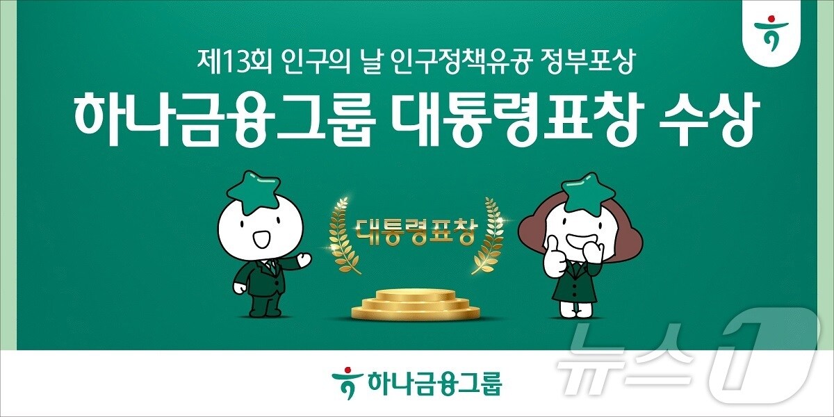 (서울=뉴스1) 박동해 기자 = 하나금융그룹은 11일 보건복지부가 주최한 '제13회 인구의날 기념식'에서 금융권 단독으로 대통령 표창을 수상했다고 밝혔다.