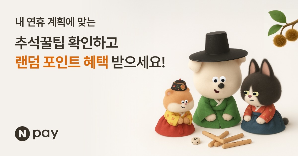 (서울=뉴스1) 손엄지 기자 = 네이버페이(Npay)가 추석 연휴를 맞아 맞춤형 '추석 꿀팁' 혜택을 추천하는 프로모션을 내달 12일까지 진행한다.