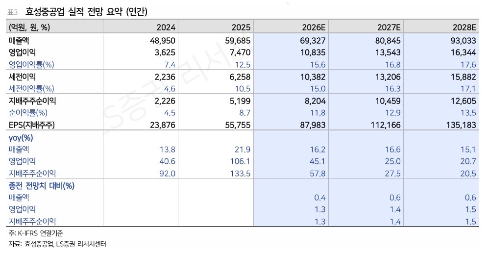 LS證 "효성중공업, 생산능력 확대에 높은 밸류…목표가 410만원"