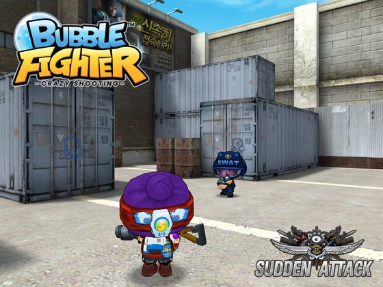 또 서든어택에 등장하는 각종 총기와 경찰특공대 S.W.A.T(스와트) 및 테러 의상 아이템을 버블파이터 내에 구현해 이색적인 재미요소를 대폭 강화했다.
