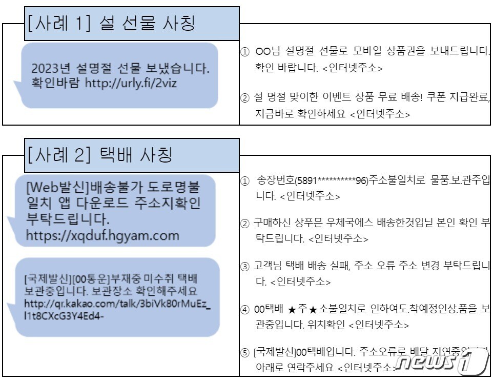 택배 주소·송장번호 불일치 관련 스미싱 문자 주의
