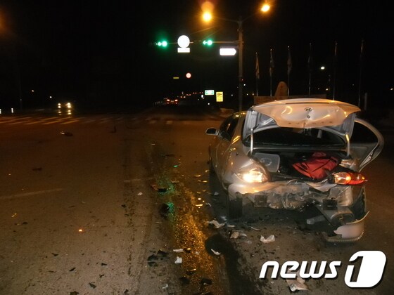 설날 밤 경주~울산 국도에서 일어난 교통사고로 차량이 처참하게 부서져 있다./사진제공=경주경찰서© News1
