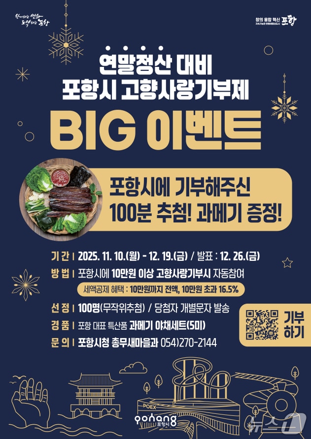 포항시, 고향사랑기부제 10만원 이상 100명에 과메기 선물