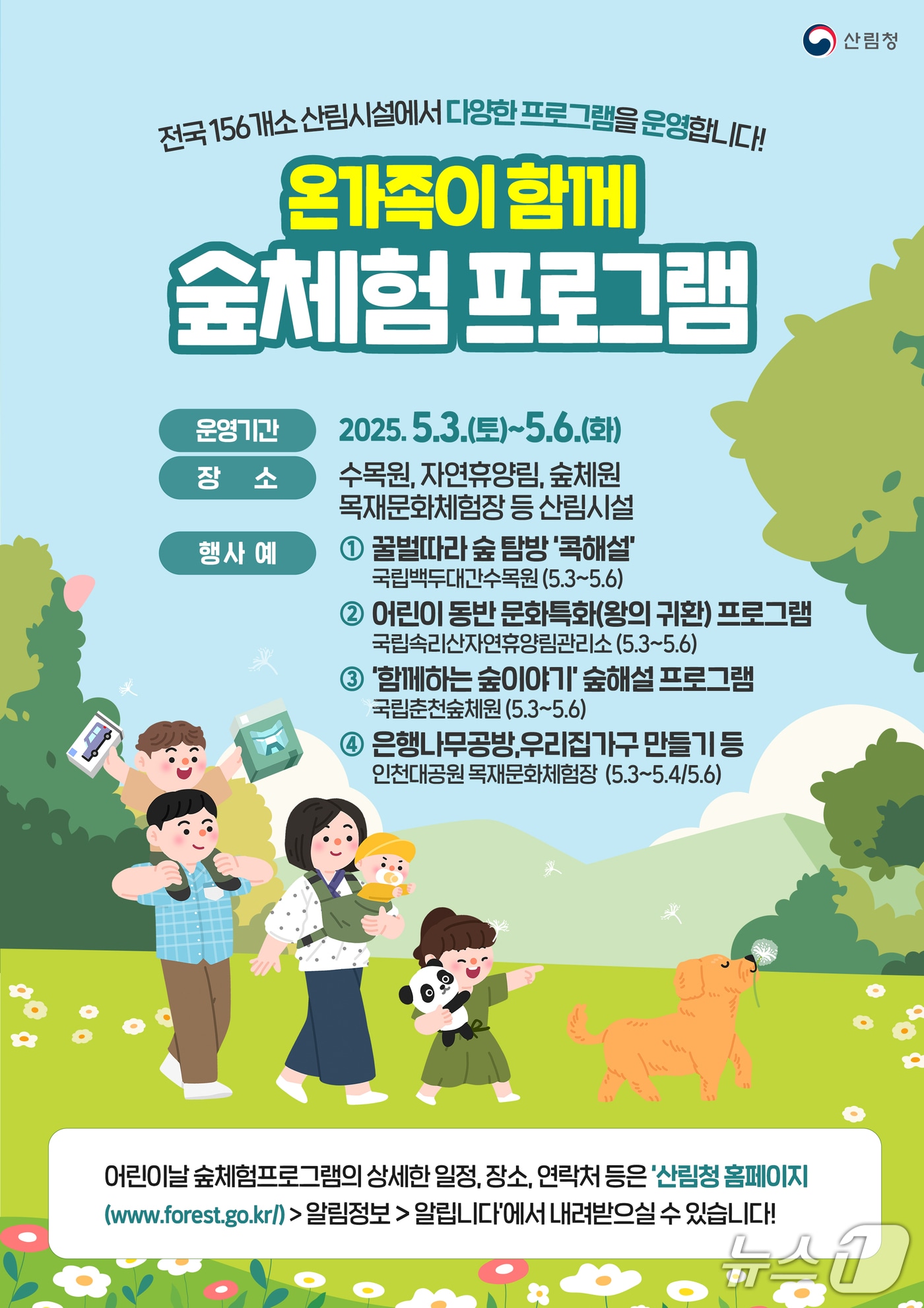 산림청 전국 156개 시설서 다양한 어린이날 체험 프로그램 운영