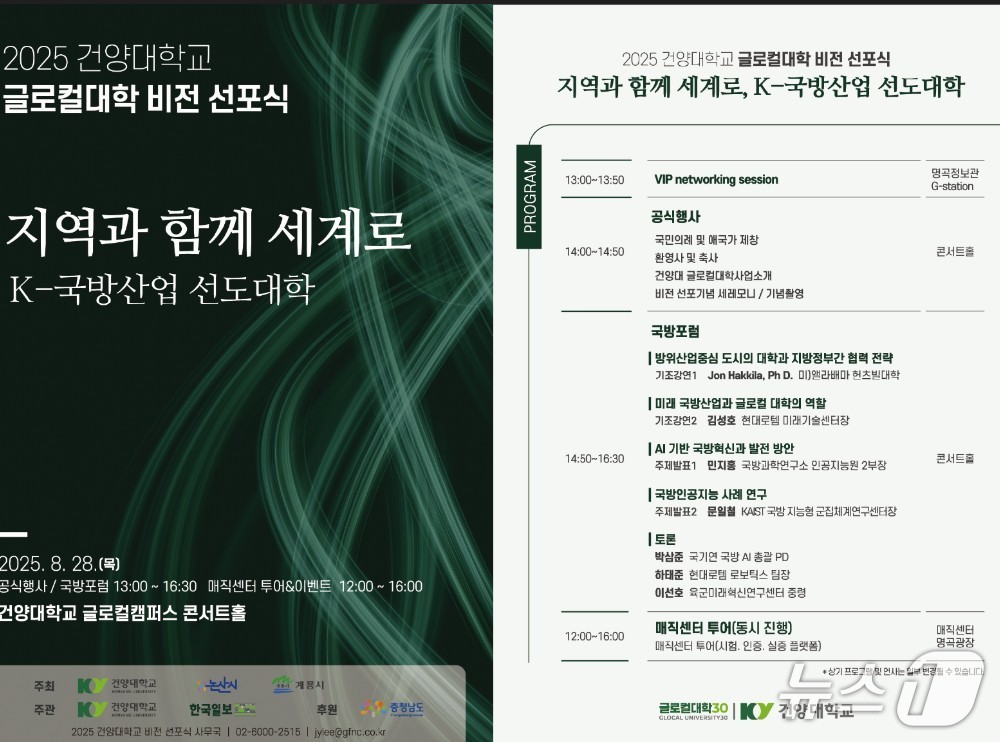 건양대 28일 ‘K-국방산업 선도대학’ 도약 글로컬 비전 선포식