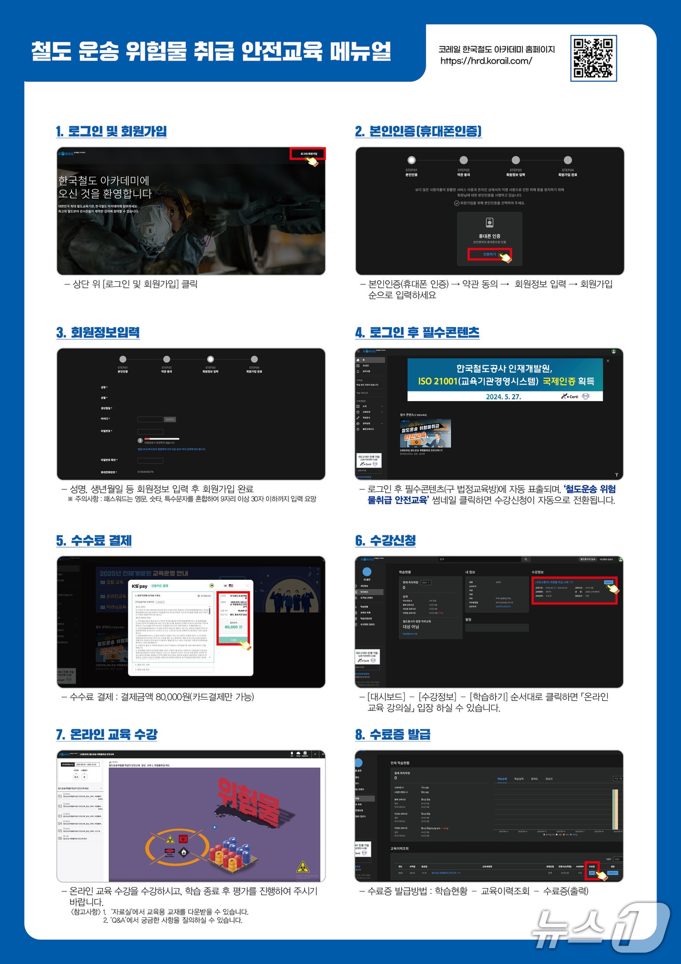 교육 대상자는 한국철도 아카데미에 접속해 회원가입 후 수강료를 결제하면 강의를 들을 수 있다.