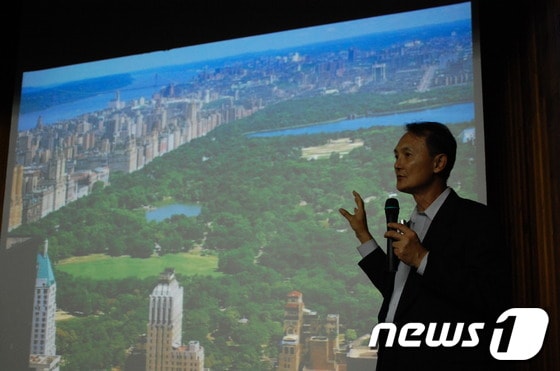 박재광 미국위스콘신대학 건설환경공학과 교수가 ‘국가 경쟁력 향상을 위한 우리의 역할’이라는 주제로 강연을 하고 있다.© News1