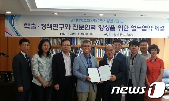 수원시정연구원와 경기대학교는 19일 경기대 총장실에서 학술정책 연구와 전문인력 양성을 위한 업무협약을 체결했다.
