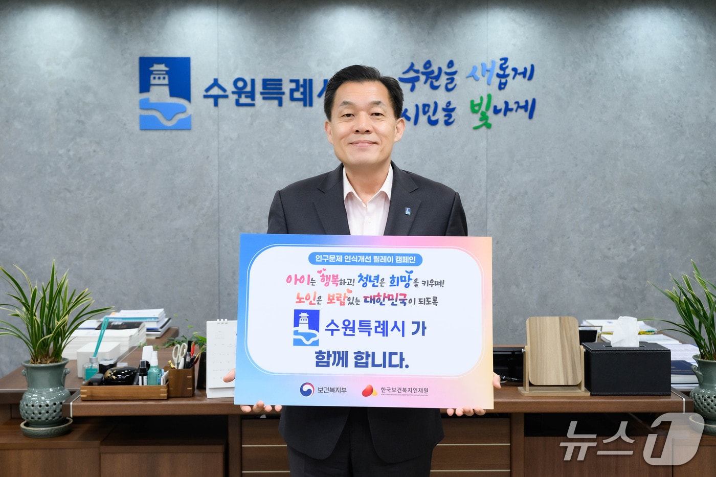 (수원=뉴스1) 김기현 기자 = 경기 수원시는 최근 이재준 시장이 '인구문제 인식 개선 릴레이 캠페인'에 동참했다고 27일 밝혔다.