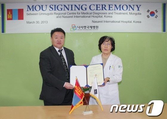 나사렛국제병원(병원장 이순자)은 지난달 30일 병원 강당에서 몽골 어믄고비 아이막 지역진단진료센터와 의학 교류을 위한 업무 협약식을 진행했다고 1일 밝혔다.
