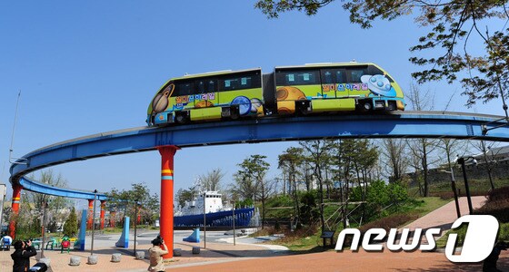 30일 오전 인천시 중구 월미공원역에서 월미은하레일 사업현황 보고 및 시승식이 열렸다. 월미은하레일은 2009년 개통을 목표로 853억원을 들여 세운 월미도 일대 관광용 모노레일로 시험운행 때 고장이 잦아 정식 개통이 계속 미뤄지고 있다. 2013.4.30/뉴스1 © News1 신창원 기자