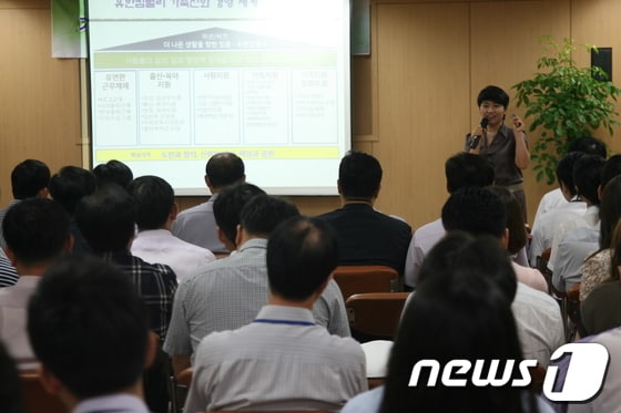 이날 강사로 나선 ㈜윌토피아 가정친화사업부 강은정 부장은 “우선 회사 동료, 선후배 사이의 칭찬과 화답을 통해서 함께 웃는 계기와 시간을 많이 가지면서 보다 밝고 활기찬 직장을 만들어 보라”며 “가정이 행복해야 직장 생활도 즐겁고, 회사 생활에 문제가 없어야 집도 안녕하다”며 가정과 일의 조화로운 균형의 중요성을 강조했다.
