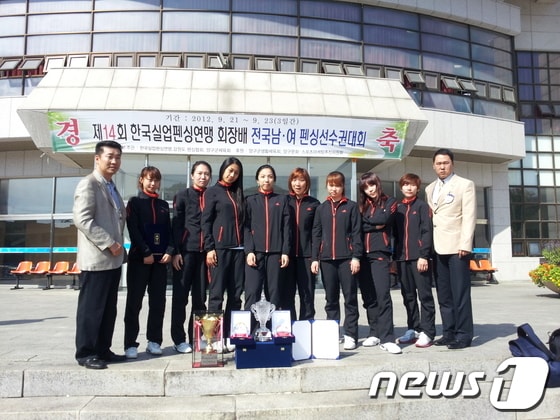 강원도 양구에서 열린 ‘제14회 실업연맹 회장배 전국 펜싱선수권대회에서 단체전 우승을 차지한 인천 중구청 직장운동경기부 여자펜싱팀 © News1