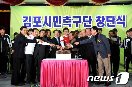 김포시는 29일 생활축구의 저변을 확대하고 스포츠 도시임을 대외적으로 알릴 김포시민축구단 창단식을 개최했다고 31일 밝혔다.