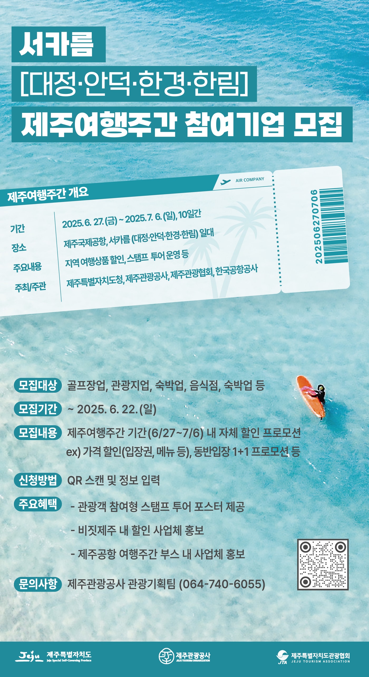 제주관광공사, 22일까지 '여름 제주여행주간' 참여업체 모집