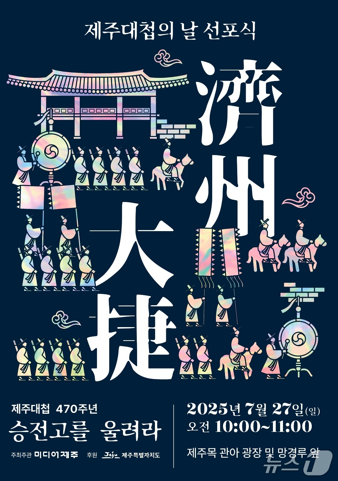 (제주=뉴스1) 고동명 기자 = '미디어제주'가 주최 및 주관하고 제주특별자치도가 후원하는 제주대첩의 날 선포식 '승전고를 울려라'가 오는 27일 오전 10시 제주목 관아 광장 및 망경루 앞에서 열린다.