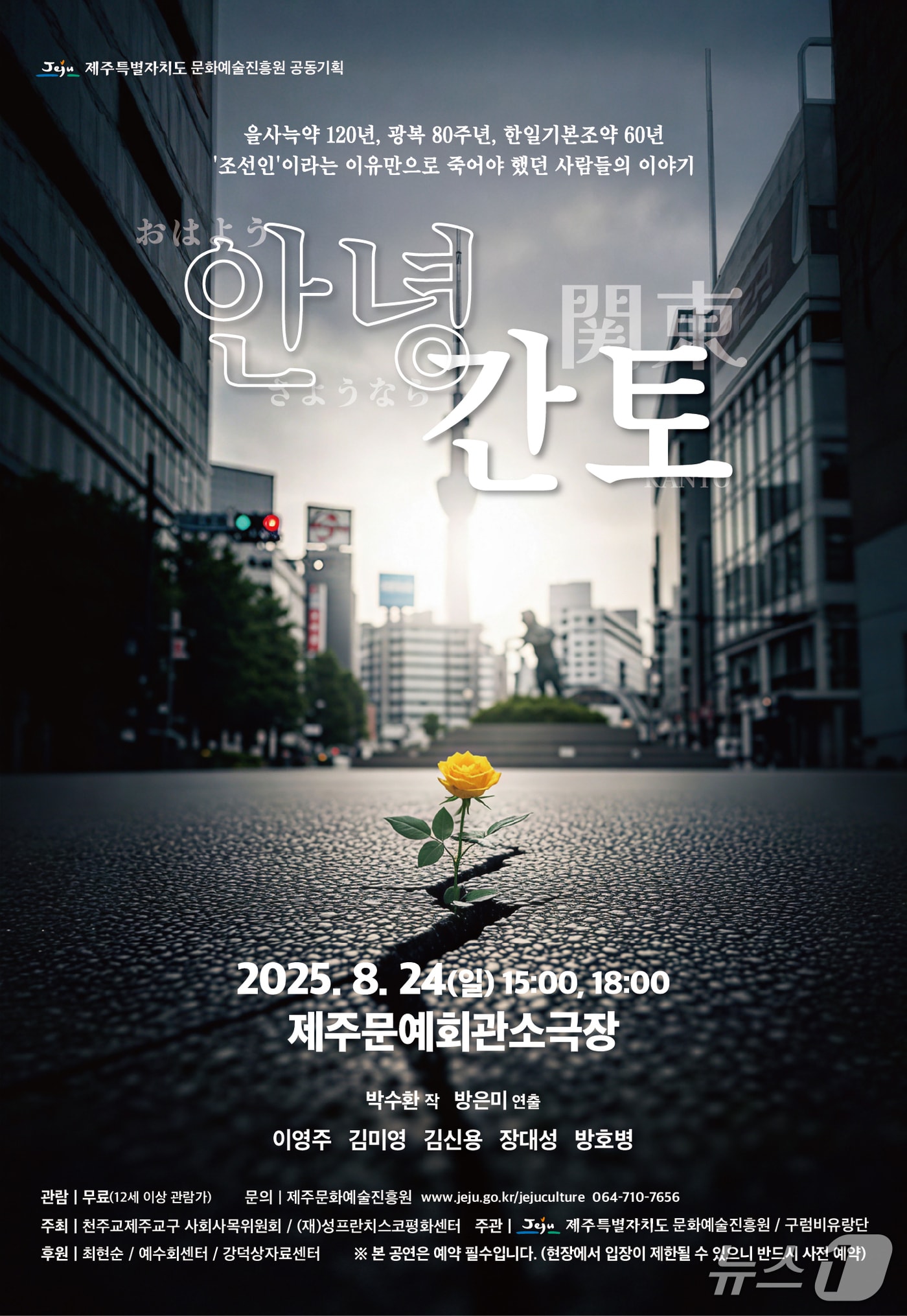 (제주=뉴스1) 고동명 기자 = 제주도 문화예술진흥원은 광복 80주년을 기념해 관동대학살을 다룬 연극 ‘안녕 간토’를 24일 오후 3시와 6시에 문예회관 소극장에서 공연한다.