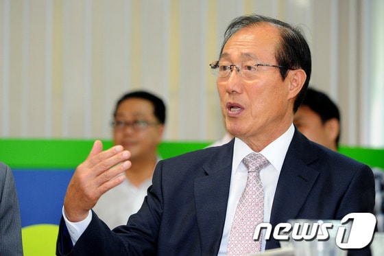대통령 소속 3대 국정과제위원회 중 하나인 지역발전위원회 이원종 원장이(오른쪽) 25일 전북 전주를 방문해 혁신도시를 둘러본 후 효자동 로컬푸드커뮤니티센터에서 지역농산물에 대한 이야기를 하고 있다.2013.7.25/뉴스1 © News1 김대웅 기자