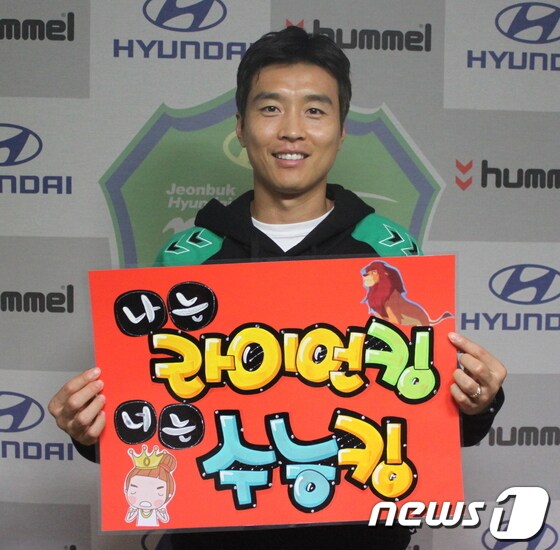 '수능 대박 행쇼'라는 응원피켓을 들은 김정우는 "항상 팬 여러분께 응원만 받아왔다"며 "전북현대의 응원이 조금이나마 수험생에게 도움이 됐으면 좋겠다"고 말했다.