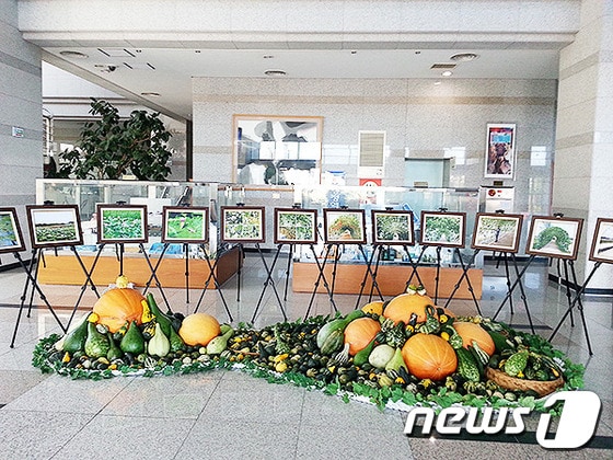 (강원=뉴스1) 윤창완 기자 = 강릉시는 경포 가시연습지에서 재배한 관상용 박을 10월말까지 시청로비에 전시한다. (사진제공=강릉시) 2013.10.5/뉴스1 © News1
