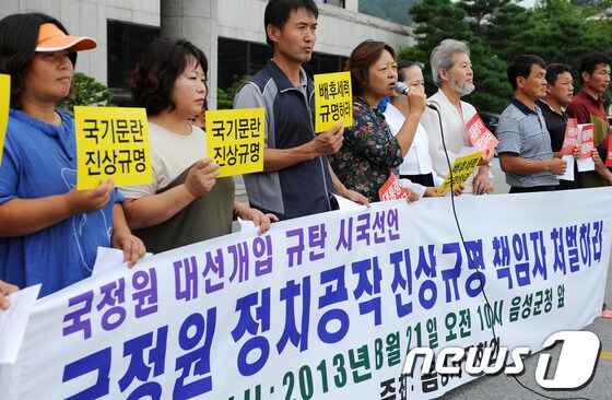 감리교 농촌선교훈련원 등 13개 종교, 시민단체는 21일 오전 10시 음성군청 현관에서 ‘국가정보원의 대선개입에 대한 명백한 진상을 밝히고 책임자를 처벌하라’ 내용의 시국선언문을 발표했다.