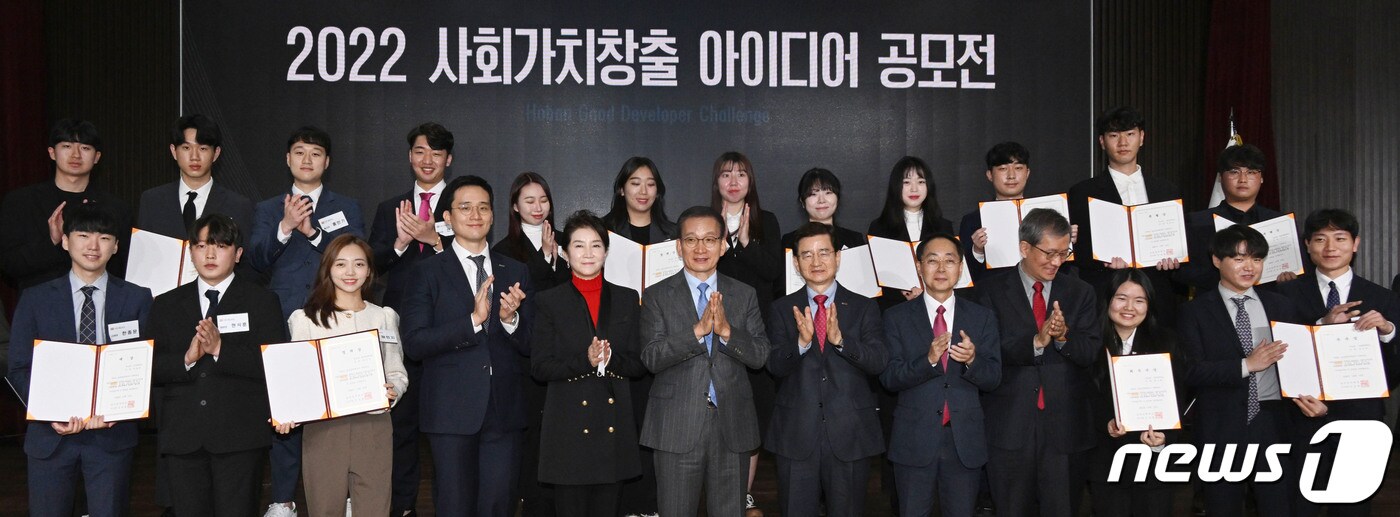 (서울=뉴스1) 이동희 기자 = 호반그룹의 호반장학재단은 13일 서울 서초구 호반파크에서 '2022 사회가치창출 아이디어 공모전' 시상식을 개최했다고 밝혔다.