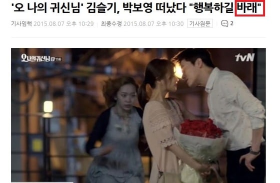 [기사 속 틀린 맞춤법] ‘오나귀’ 김슬기, 박보영 떠났다 “행복하길 바래(X)”