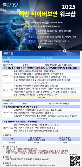 고려대 정보보호연구원, 21일 제8회 해양사이버보안 워크숍 개최