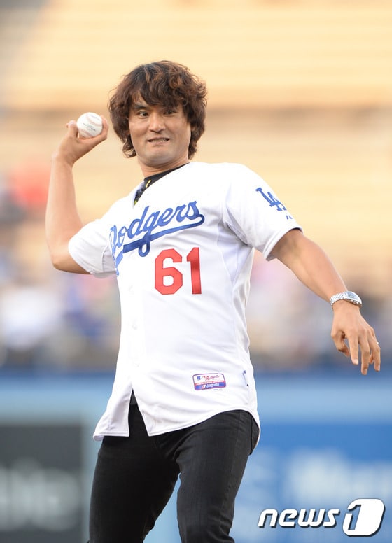 박찬호는 28일(한국시간) 미국 캘리포니아주 로스앤젤레스 다저스타디움에서 열린 2014 프로야구(메이저리그) LA 다저스와 신시네티 레즈와의 2차전 경기에 앞서 시구를 했다.