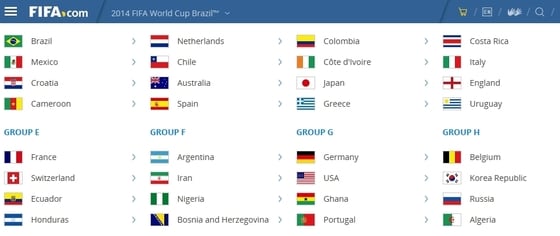 월드컵 조별순위가 대회가 시작된지 6일 만에 서서히 16강 진출국이 확정됐다. © 국제축구연맹 홈페이지 캡처