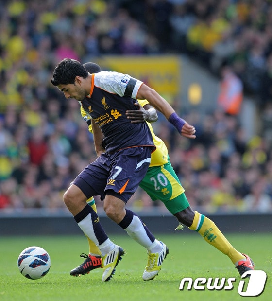 리버풀의 루이스 수아레즈(Luis Suarez)선수. 29일 열린 리버풀 대 노리치의 이 날 경기는 5-2로 리버풀이 대승했다. AFP /OLLY GREENWOOD /News1, 무단전재 및 재배포금지