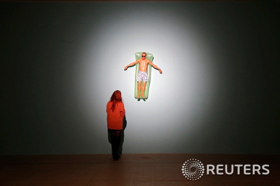 15일(현지시간) 프랑스 파리의 카르티에 재단 현대 미술관에서 한 관람객이 호주 극사실주의 조각가 론 뮤익의 작품 '표류(Drift)'(2009)를 감상하고 있다. 론 뮤익 전시회는 4월16일부터 9월29일까지 카르티에 재단 현대 미술관에서 열릴 예정이다. © 로이터=News1