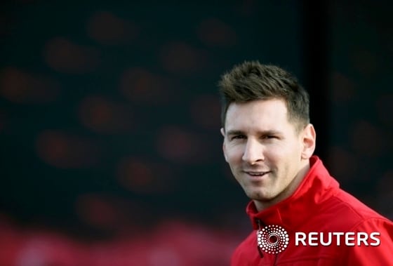 (바르셀로나 로이터=뉴스1) 이기창 기자 = 스페인 프리메라리가 바르셀로나의 세계 최고공격수 리오넬 메시가 27일(현지시간) 홈구장 캄프 누에서 진행된 상업광고행사에 참석하고 있다.