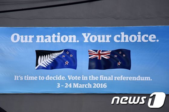 (웰링턴 AFP=뉴스1) 우동명 기자 = 뉴질랜드에서 3일(현지시간) 국기의 변경 여부를 묻는 국민 투표가 시작됐다. 현재의 국기를 계속 사용하자는 의견과 지난해 12월 투표에서 가장 인기가 높았던 새 디자인을 선택할지를 두고 선택하는 투표다.