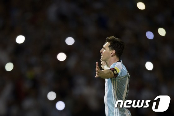 (코르도바 AFP=뉴스1) 우동명 기자 = 아르헨티나의 리오넬 메시가 29일(현지시간) 코르도바의 에스타디오 마리오 알베르토 켐페스에서 열린 2018 월드컵 남미예선 볼리비아와의 경기서 50번째 A매치골을 터트린뒤 기뻐하고 있다.