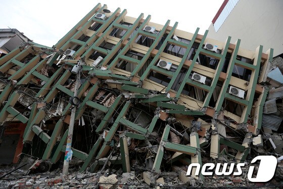 (포르토비에호 AFP=뉴스1) 우동명 기자 = 17일 (현지시간) 에콰도르 포르토비에호에서 진도 7.8의 강진으로 장난감처럼 부서진 건물의 모습이 보인다. 이번 지진으로 에콰도르에서 246명이 숨지고 2527명이 부상을 당했다.