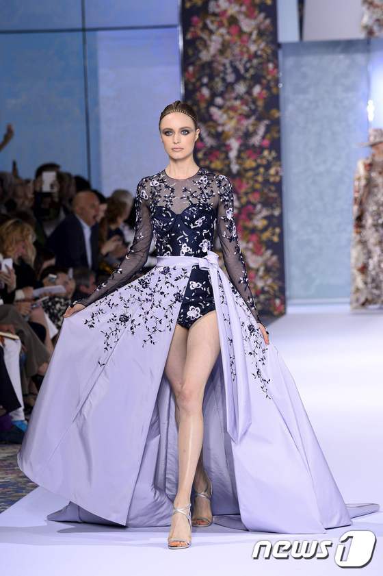 (파리 AFP=뉴스1) 우동명 기자 = 4일 (현지시간) 파리에서 열린 2016-2017 가을 겨울 오트 쿠튀르 컬렉션 패션쇼에서 모델이 랄프 앤 루소의 작품을 선보이고 있다.