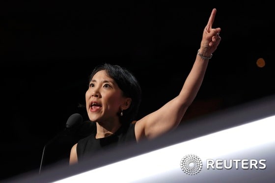 (클리블랜드 로이터=뉴스1) 우동명 기자 = 한국계 미국인 리사 신 박사가 21일(현지시간) 오하이오주 클리블랜드 퀴큰론스 아레나에서 열린 공화당 전당대회 마지막날 행사에서 도널드 트럼프 공화당 대선후보를 지지하는 연설을 하고 있다.