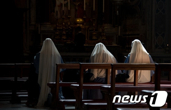 바티칸 성 베드로 성당에서 기도를 드리는 수녀. 세계 곳곳에서 이 곳 바티칸에 모인 추기경들은 새로운 교황을 뽑는 콘클라베(conclave, 잠긴 문이라는 뜻의 새로운 교황선출절차투표)를 12일 시작한다. AFP / JOHANNES EISELE / News1, 무단전재 및 재배포금지