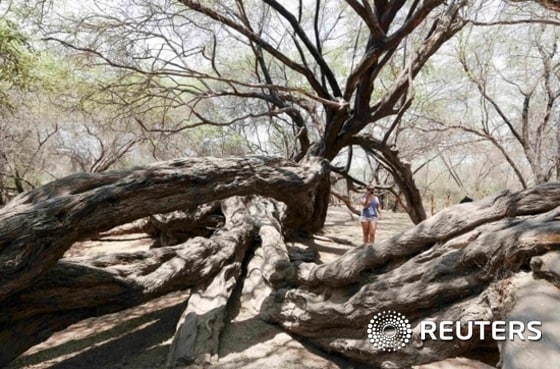 (포막 로이터=뉴스1) 이기창 기자 = 페루의 한 여학생이 18일(현지시간) 람바예케 북부에 위치한 포막 자연보호구역에서 수령 500년이 넘은 알가로보나무를 바라보고 있다.