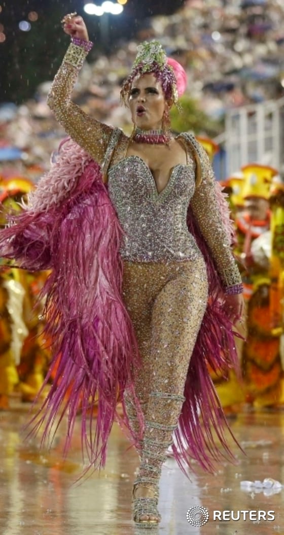 (리우 로이터=뉴스1) 이기창 기자 = 드럼의 여왕으로 불리는 삼바학교 비라도우루의 라이사 마차두가 15일(현지시간) 브라질 리우데자네이루에서 열린 연례 축제에 참석하고 있다.