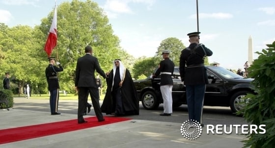 (백악관 로이터=뉴스1) 이기창 기자 = 미국의 버락 오바마 대통령이 13일(현지시간) 워싱턴 백악관에서 열린 걸프협력회의 사절단과 대표들을 맞는 동안 바레인의 살만 빈 파마드 빈 이사 알 칼리파 왕세자와 반갑게 악수를 나누고 있다.