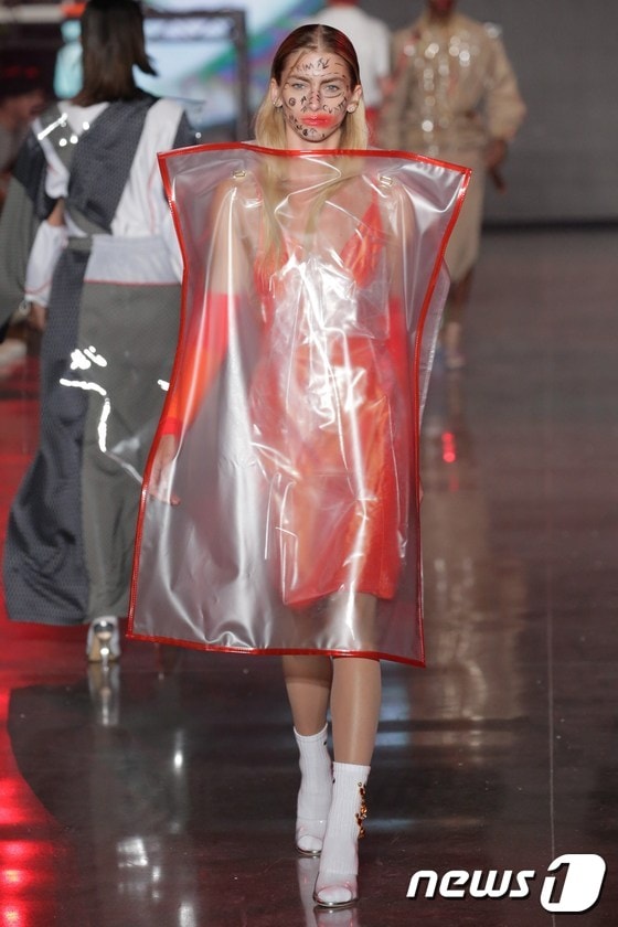 (뉴욕 AFP=뉴스1) 최종일 기자 = 7일(현지시간) 미국 뉴욕에 있는 스프링 스튜디오에서 2016 뉴욕 패션 위크가 열리고 있는 가운데 한 모델이 브이파일즈(VFILES) 패션쇼에서 워킹을 선보이고 있다.