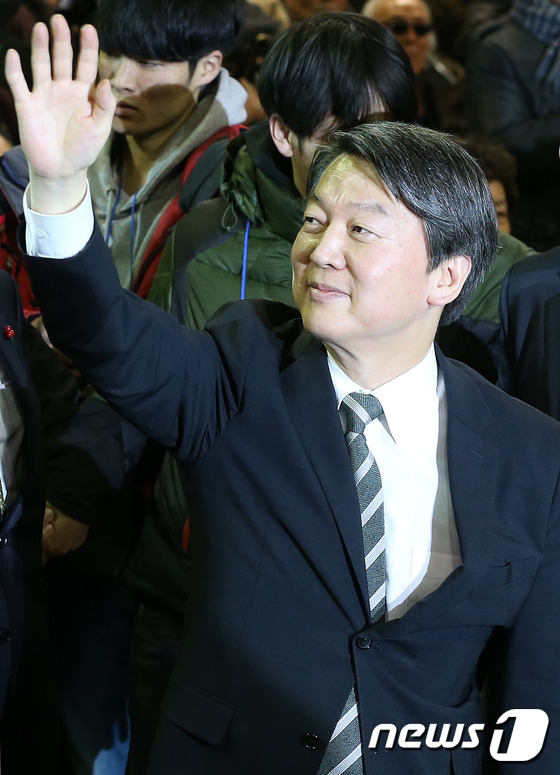 | 안철수 국민의당 공동대표가2일 오후 대전 한밭체육관에서 열린 중앙당 창당대회에서 손을 흔들며 입장하고 있다. 2016.2.2/뉴스1 © News1 박지혜 기자 |